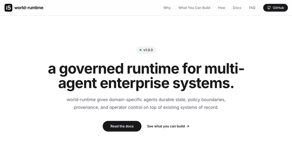 World-Runtime provides a repo-native and agent-runnable architecture, allowing both human operators and AI agents to function with total transparency and no hidden context. The platform ensures deterministic decision-making by utilizing an append-only event history and a world graph to reconstruct states with absolute evidence.