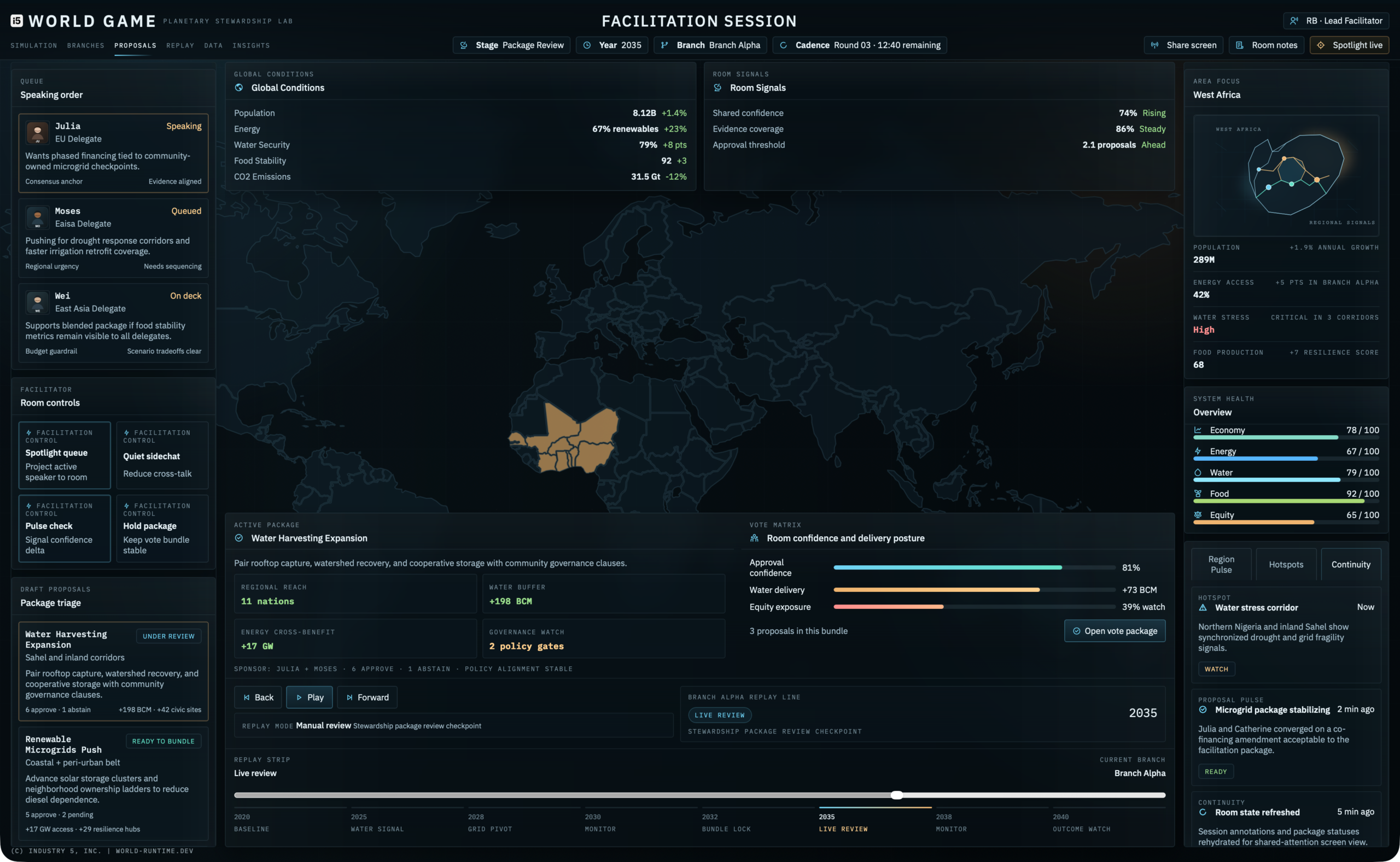 Inspired directly by Buckminster Fuller’s World Game. Powered by i5 World-Runtime.