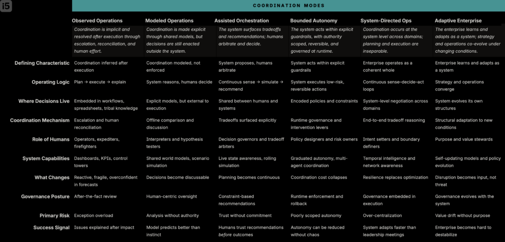 They select platforms, assemble tools, and configure workflows, assuming coordination will emerge through integration and governance processes. In stable environments, this can work well enough. In environments shaped by continuous change and autonomous decision-making, it does not.